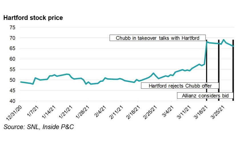 This was subsequently confirmed by Chubb. On March 23, The Hartford issued a one-sentence response noting that it had rejected the unsolicited proposal.